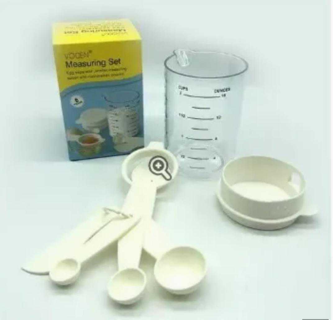 Make your cooking and baking easier with this 6 Pieces Kitchen Baking Measuring Set. The set includes a 0.5 litre measuring cup with built-in strainer and pourer cover for smooth and mess-free pouring. It also comes with 3 measuring spoons for precise ingredient measurement, an egg separator for separating yolk and white easily, and a scraper leveller for accurate measuring. Made from durable food-grade material, this set is lightweight, easy to clean and perfect for everyday kitchen use. Ideal for baking, cooking, and meal preparation.