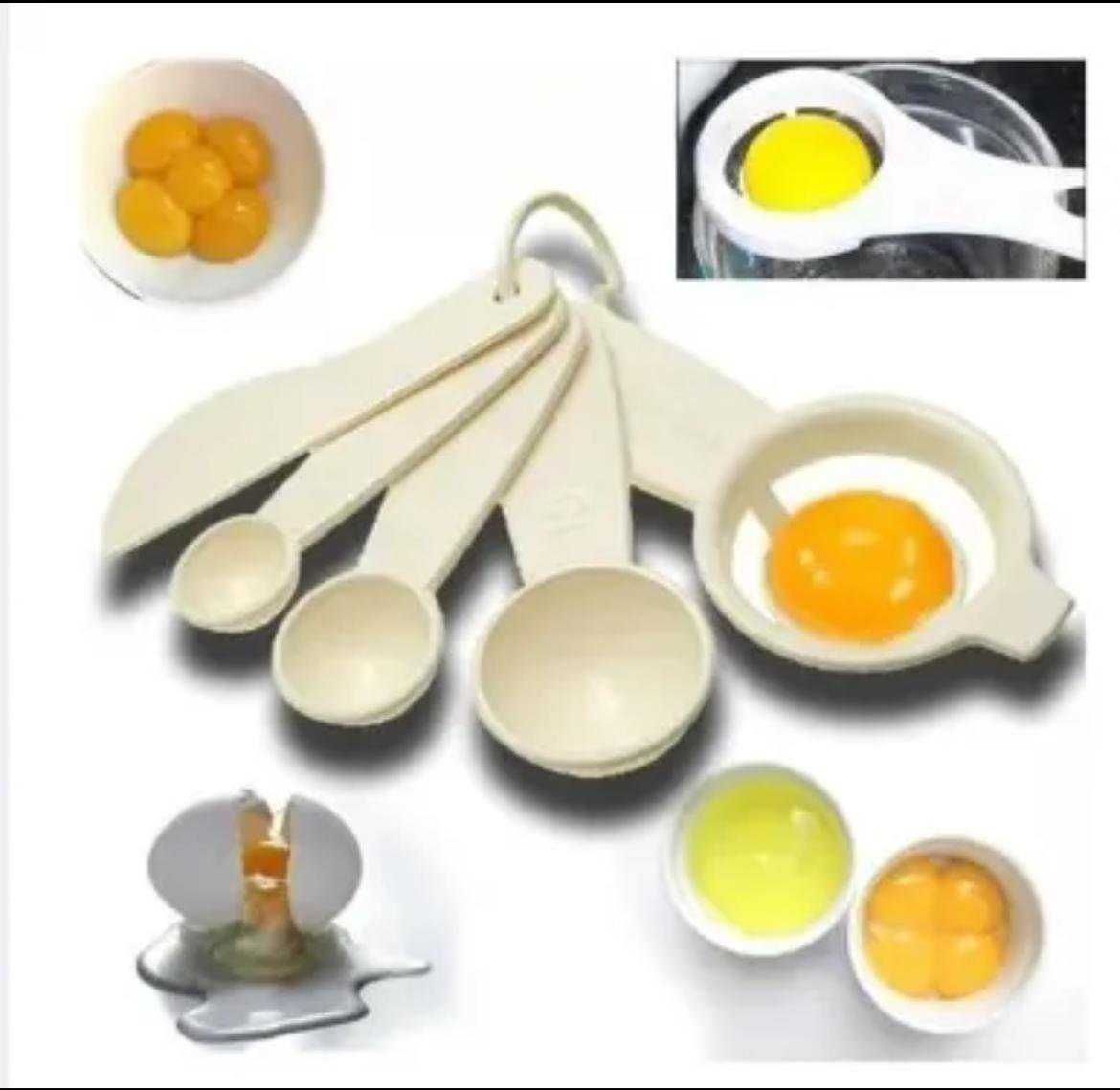 6 pieces kitchen baking measuring set including 0.5 litre measuring cup with strainer & pourer cover, 3 measuring spoons, egg separator and scraper leveller. Perfect for accurate cooking and baking.