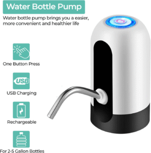 One Button Operation: Just press the button on top and you get refreshing water quickly, and press the button again at any time to stop pumping. During pumping, it will have a beautiful bright blue colour LED light illumination around the button.