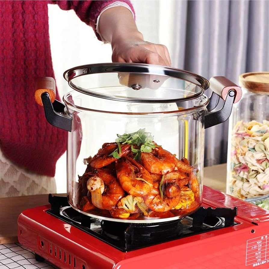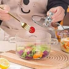 Upgrade your kitchen with this Heat Resistant Glass Cooking Pot made from premium borosilicate glass. Designed for direct stove use, this transparent pot allows you to monitor your cooking easily. The strong heat-resistant body handles high temperatures while the wooden handle provides a comfortable and safe grip. Perfect for cooking soup, noodles, pasta, milk, tea, baby food and more. Healthy, non-toxic and easy to clean. Available in two convenient sizes for daily use.