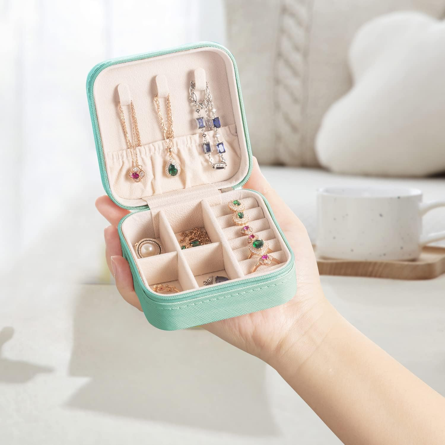 Portable: This travel jewelry box is compact and lightweight; it is easy to carry in your handbag or luggage and keep your jewelry organized. Perfect for traveling, business trip, etc.