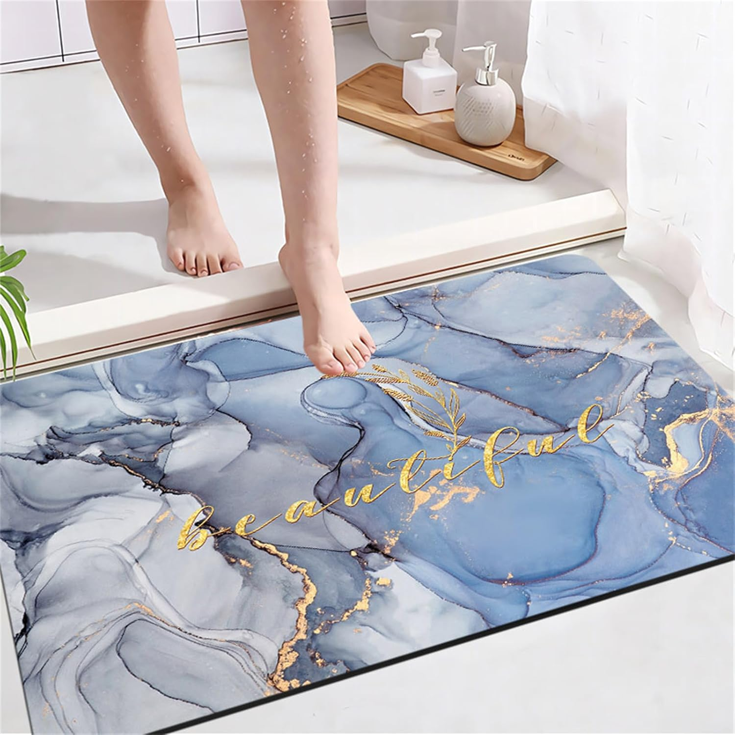 Widely Used: These floor mats designed with marbling in moderate color; it can easily be matched with various home styles. They are perfect for use in bathrooms, kitchens, laundry rooms, living rooms, bedrooms, entrances, and other areas.